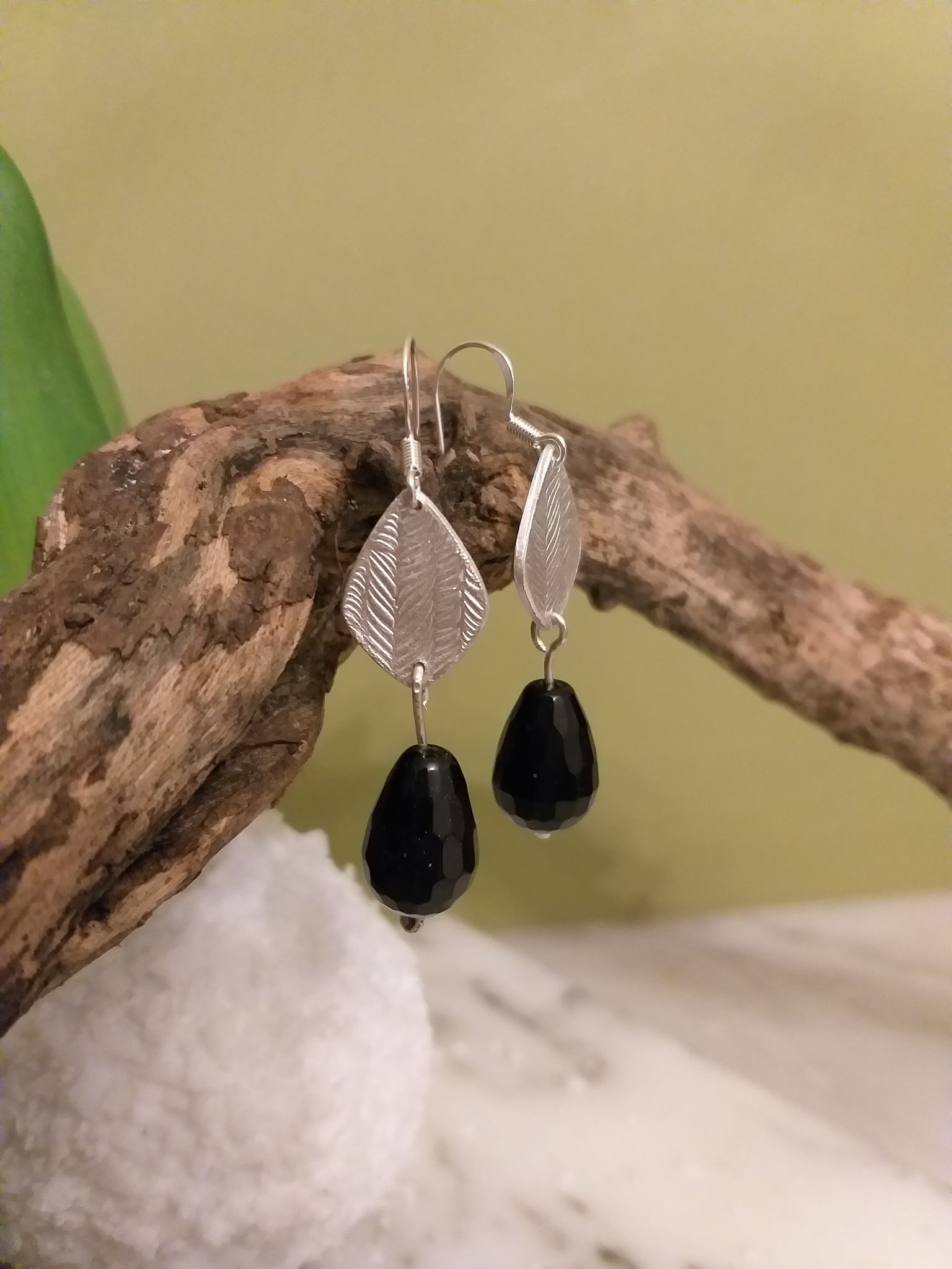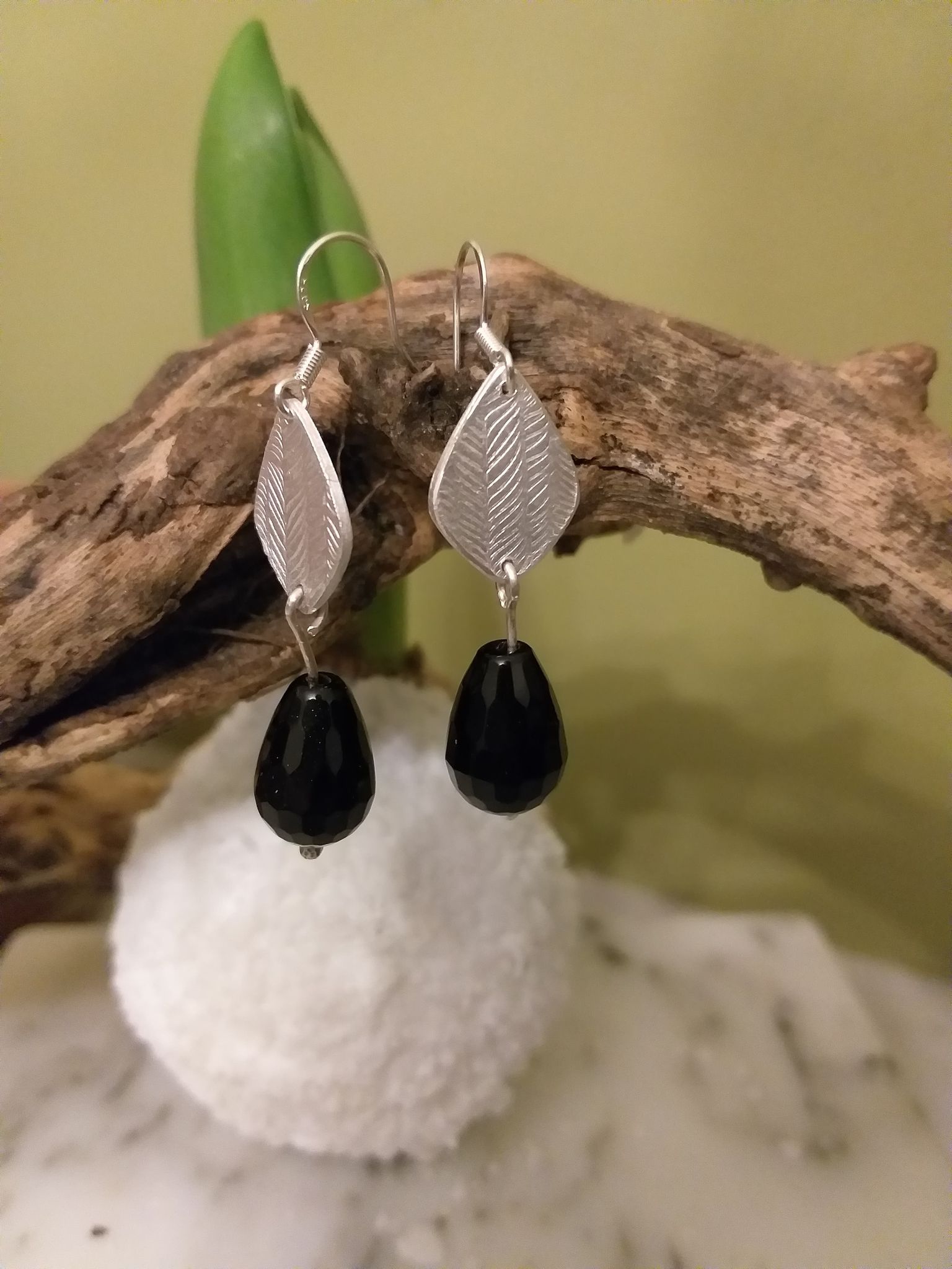 Zuiver zilveren oorhanger met onyx druppel facet geslepen.
