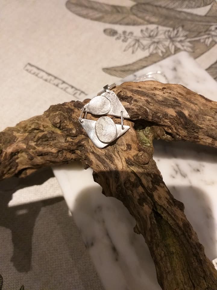 Zuiver zilveren vingerprintjuweel.